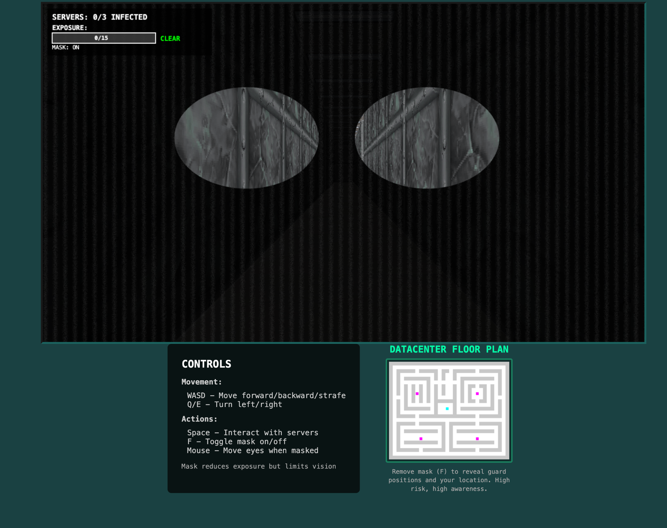 Mask Protocol is a first-person stealth infiltration game where you must sabotage and destroy an AI Datacenter before it's too late.